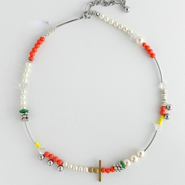 再販 ヴィンテージミックスカラフルネックレス orange