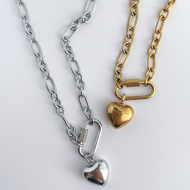 ハートチャーム&チャンキーチェーンネックレス シルバー リニューアル