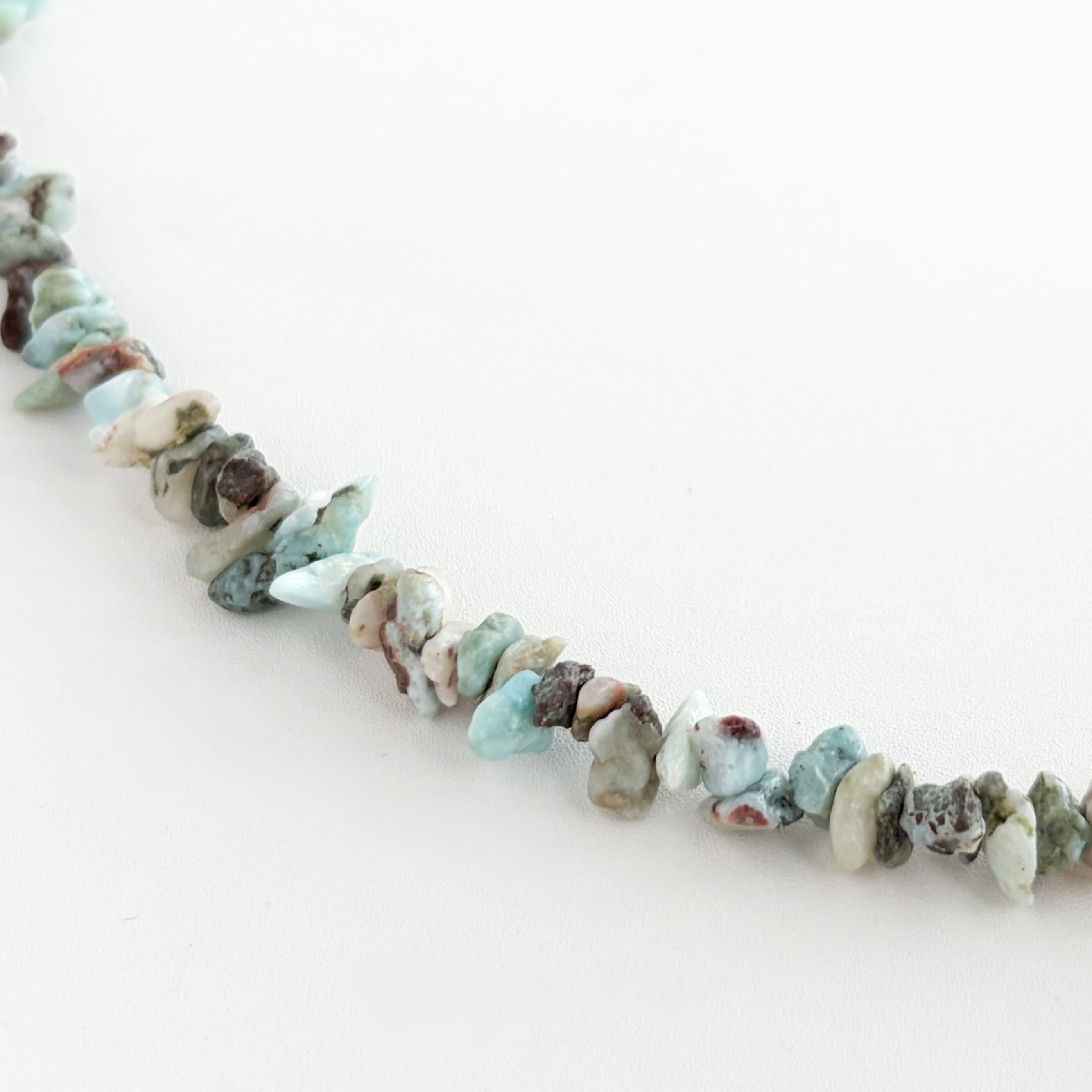 今回はこちらのラリマーを贅沢に使用し、着用していただくだけでパワーが出そうなネックレスに仕上げました。