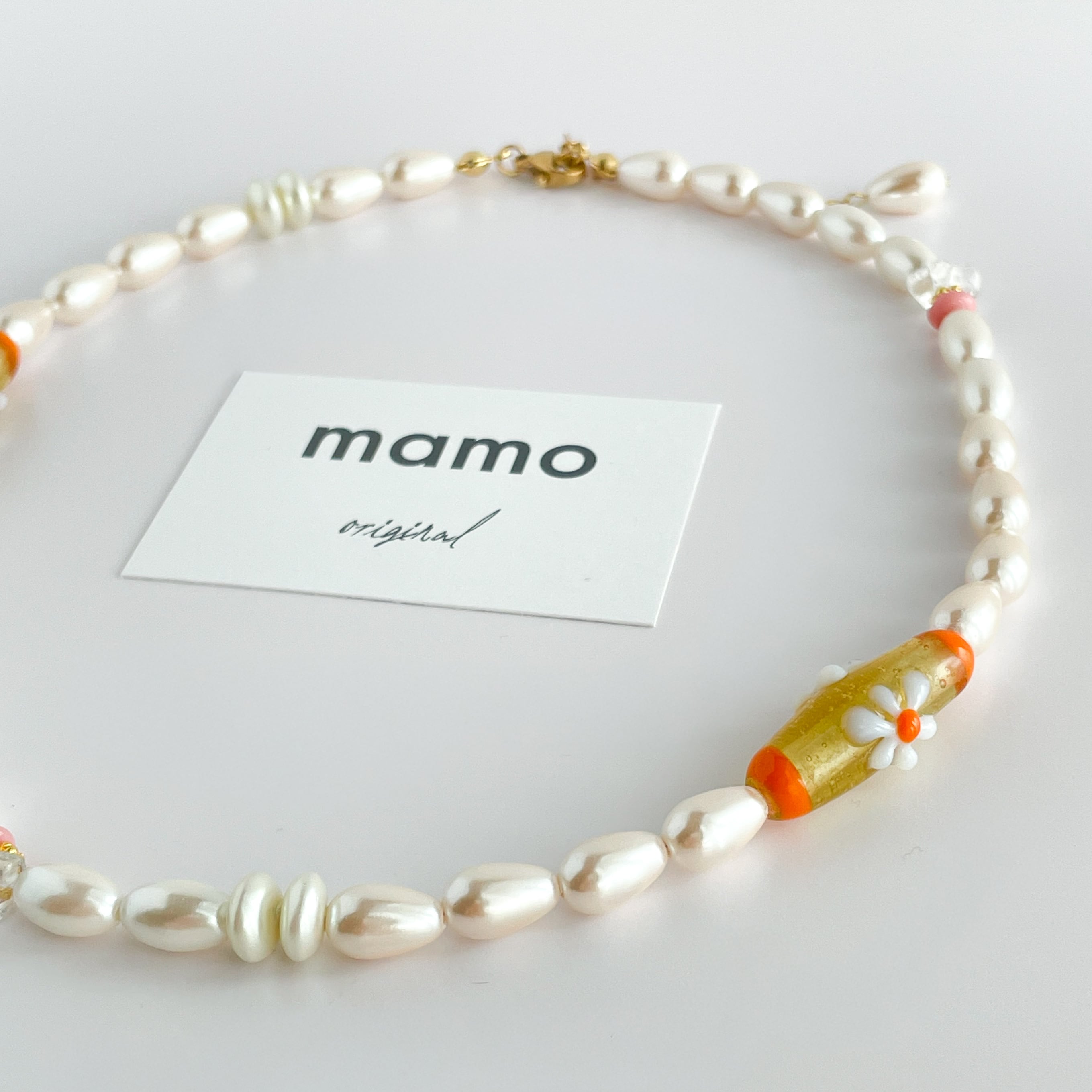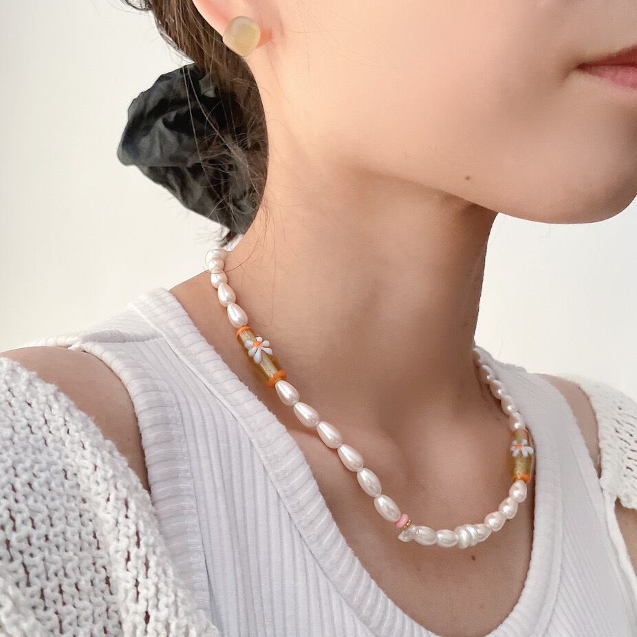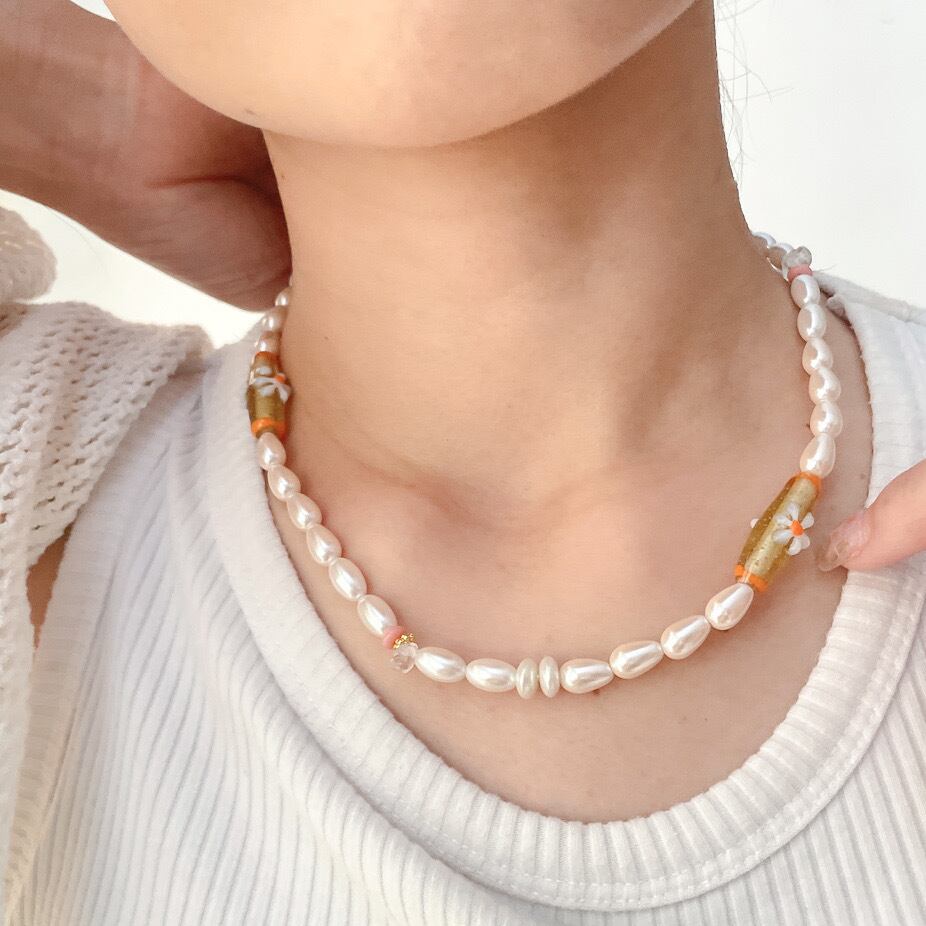 ヴィンテージパール&フラワーパーツチョーカー オレンジ