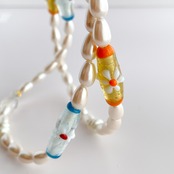 使用しているヴィンテージパールは、1960年代ごろに日本で輸出用につくられたもので、ひと粒ひと粒に独特の艶や質感があります。