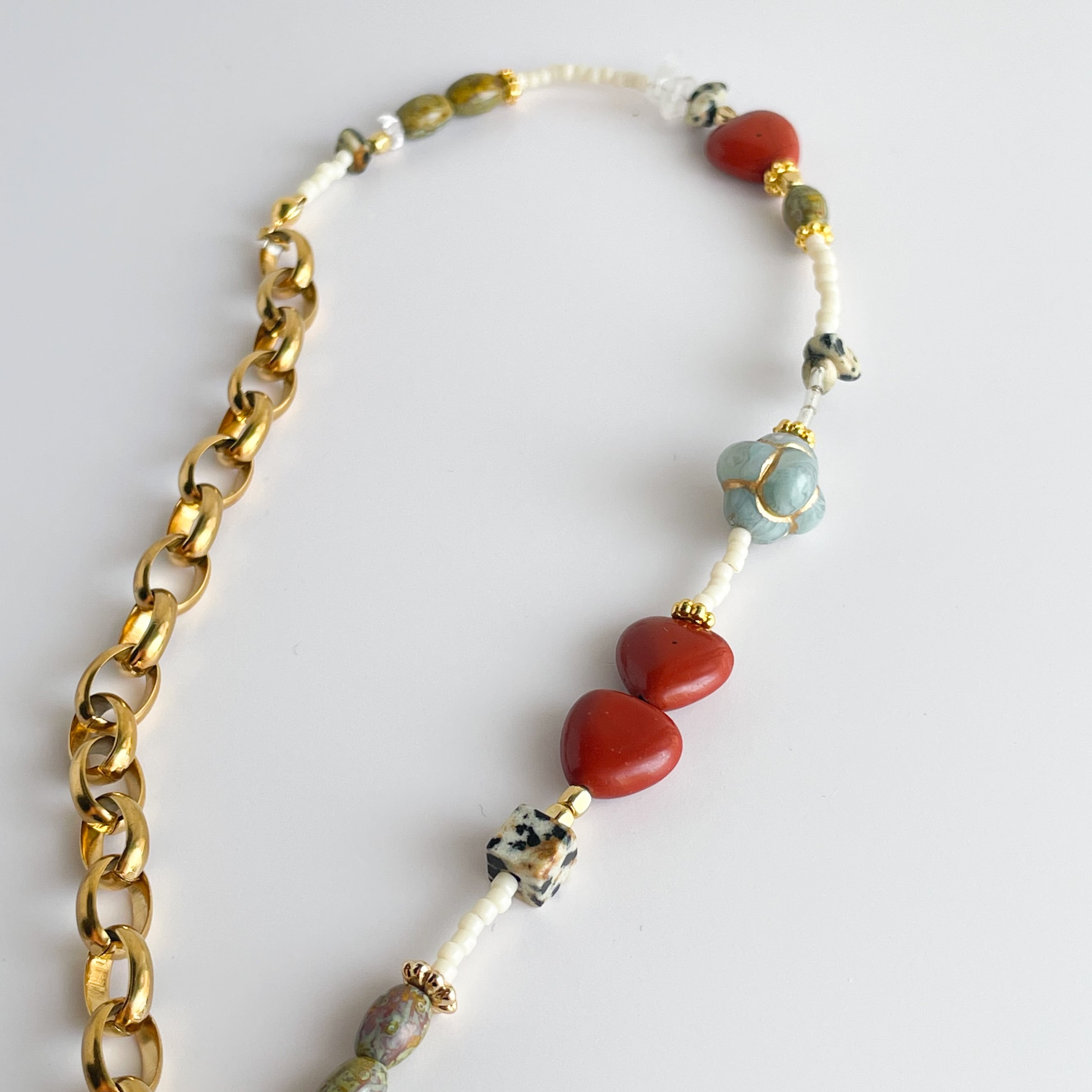 ・天然石:レッドジャスパー(ハート型)、クリスタル、ダルメシアンジャスパー など