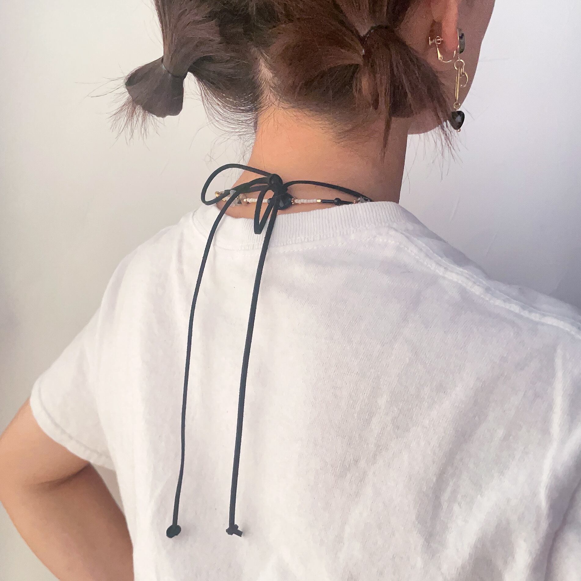 チョーカー風にぴったりと巻いたり、ゆるくロングネックレスのように垂らしたりと、アレンジは自由自在♡