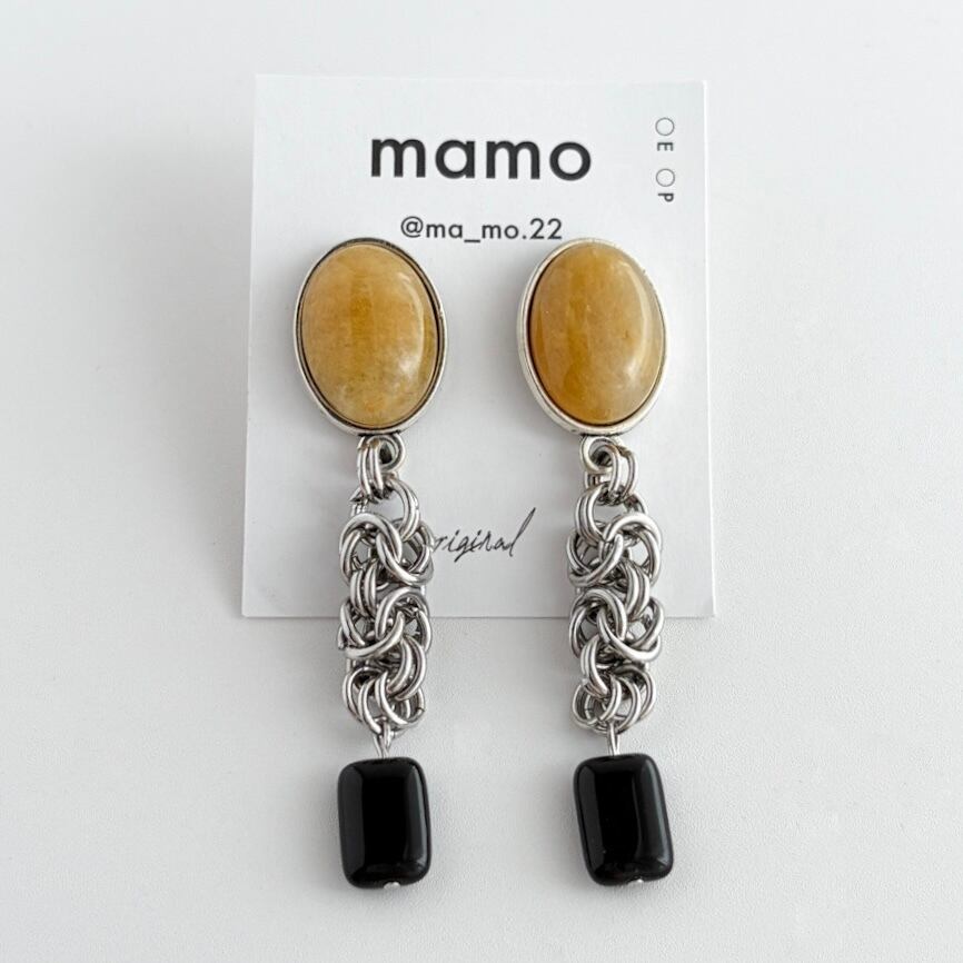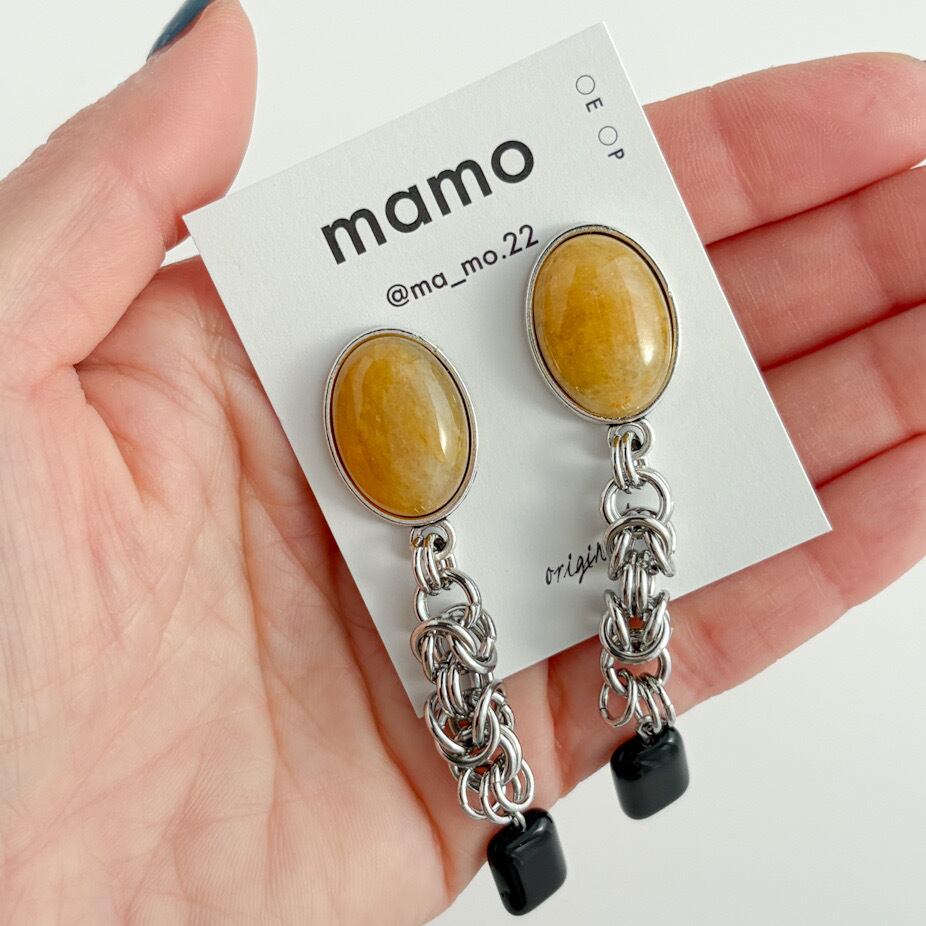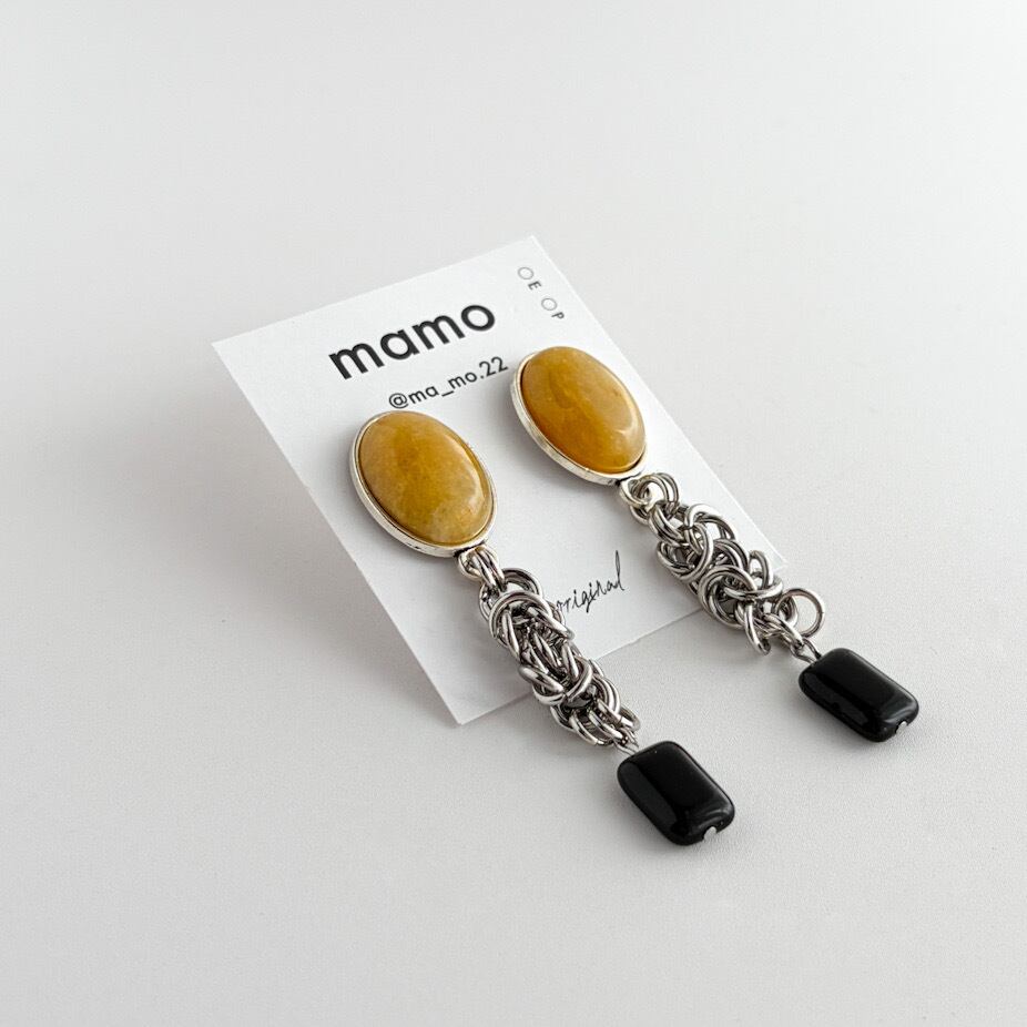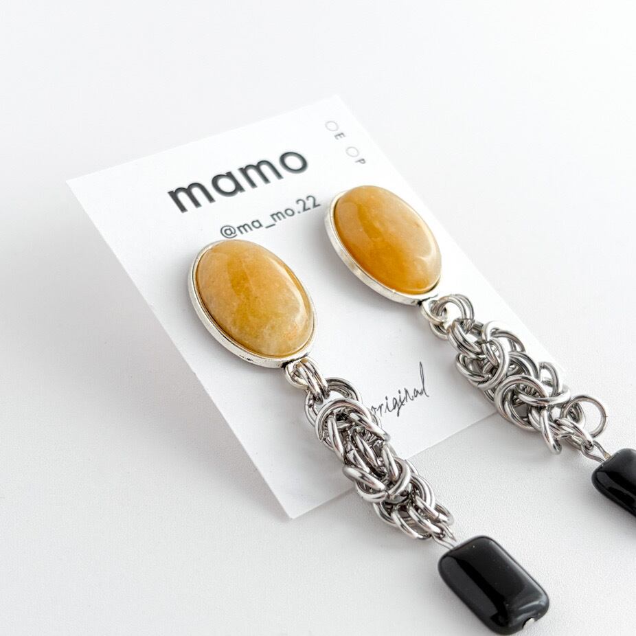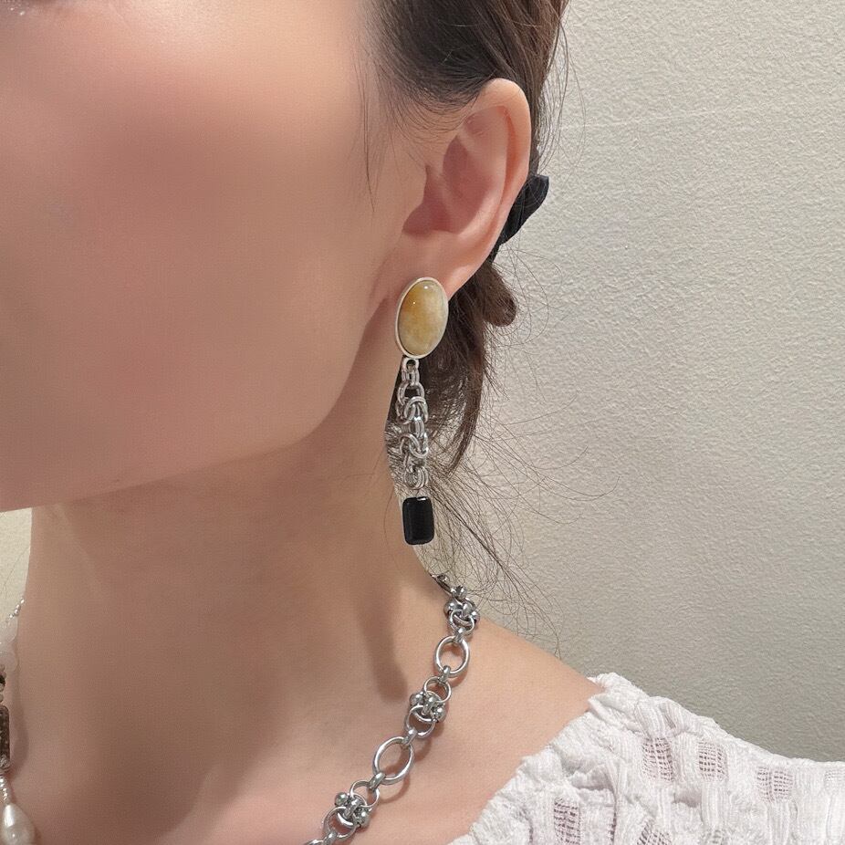 イエロージェイド×ヴィンテージパーツの耳飾り
