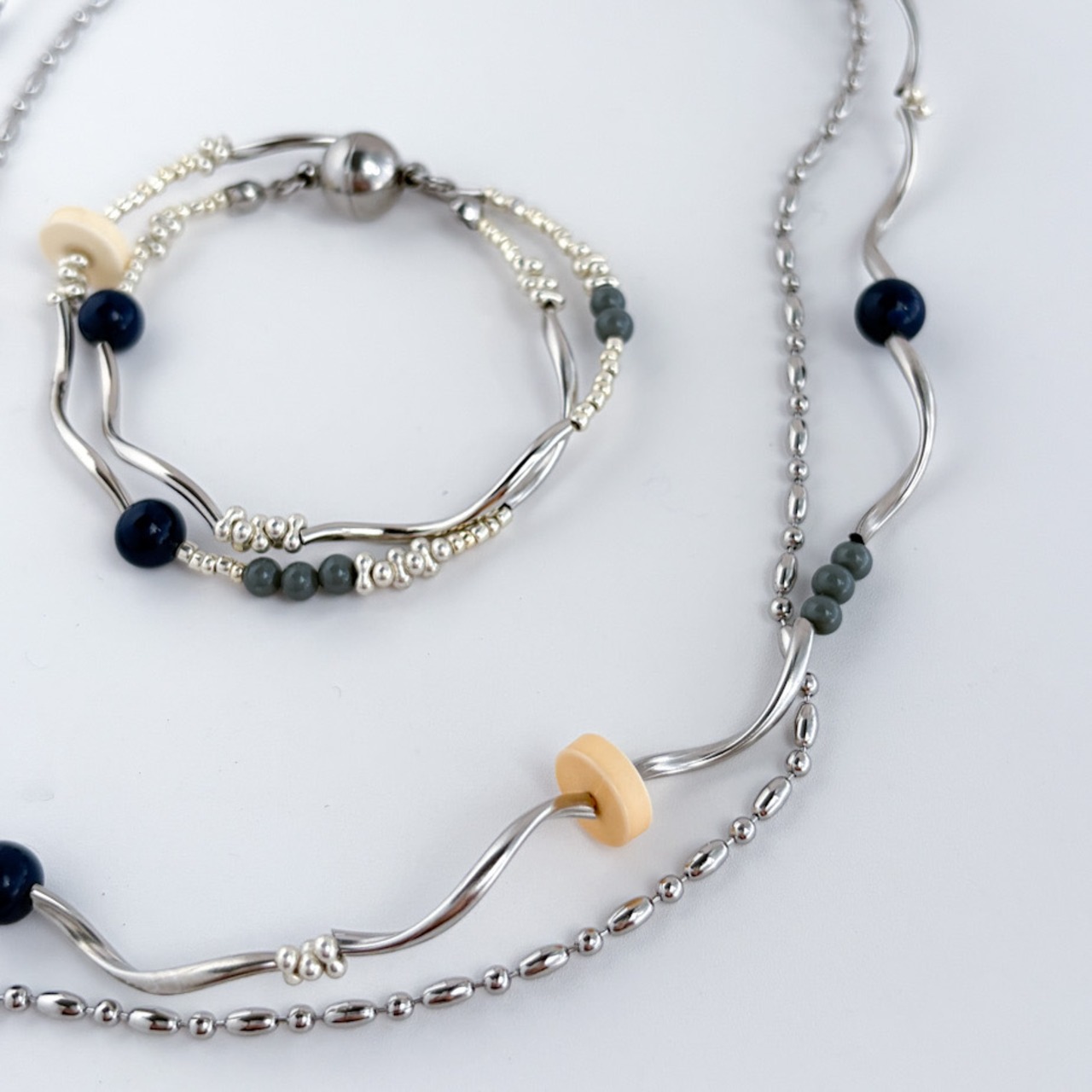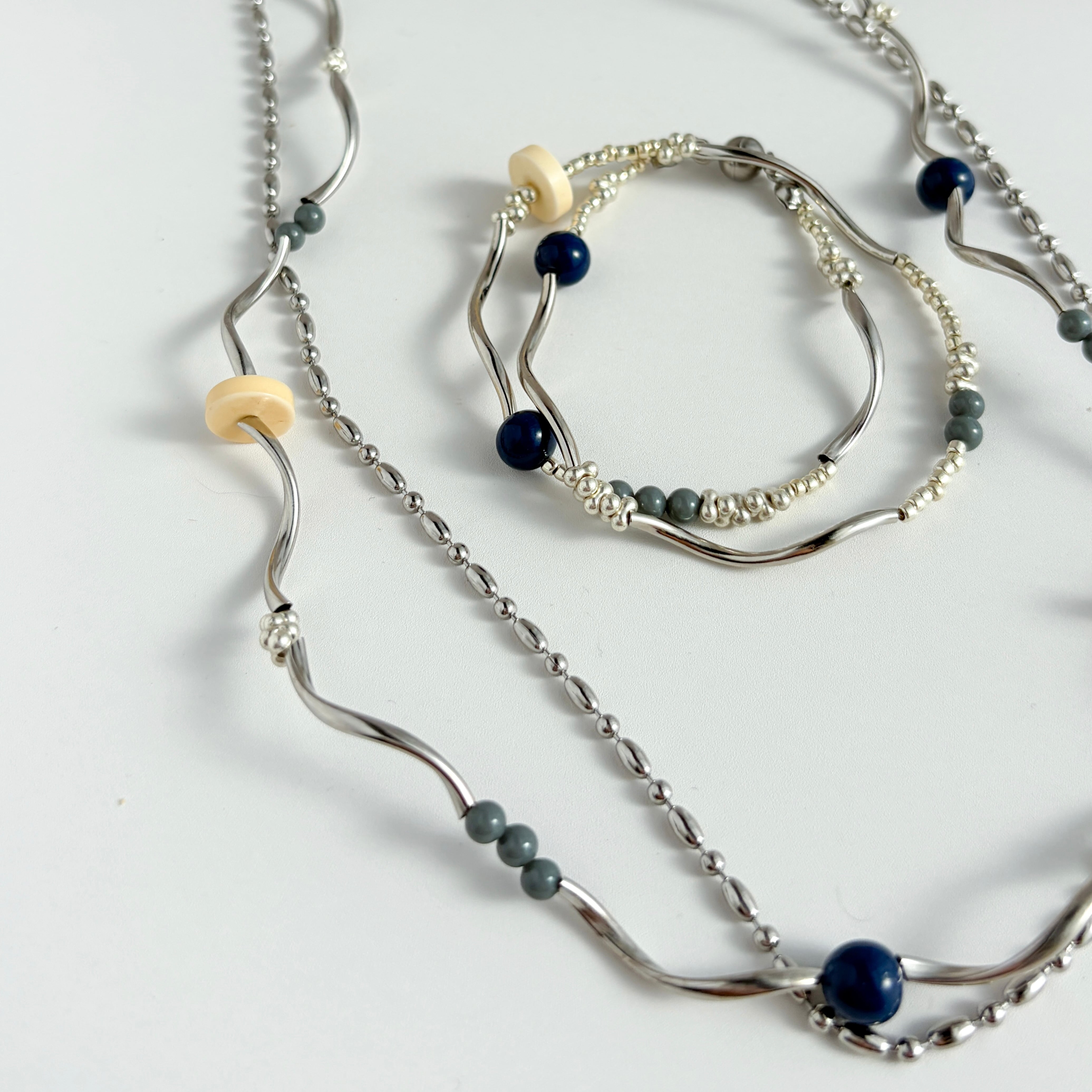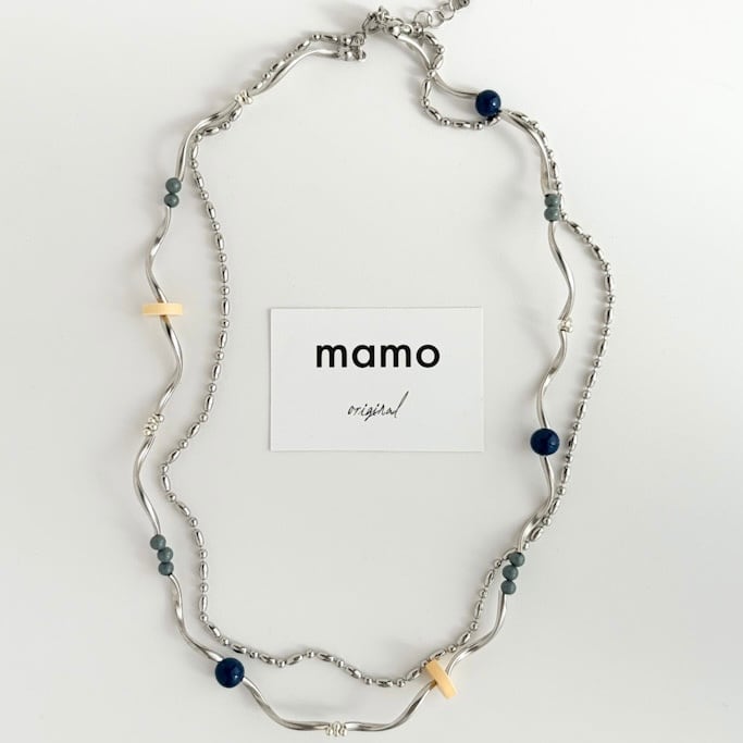 Wave Line and chain necklace -Yellow × Navy