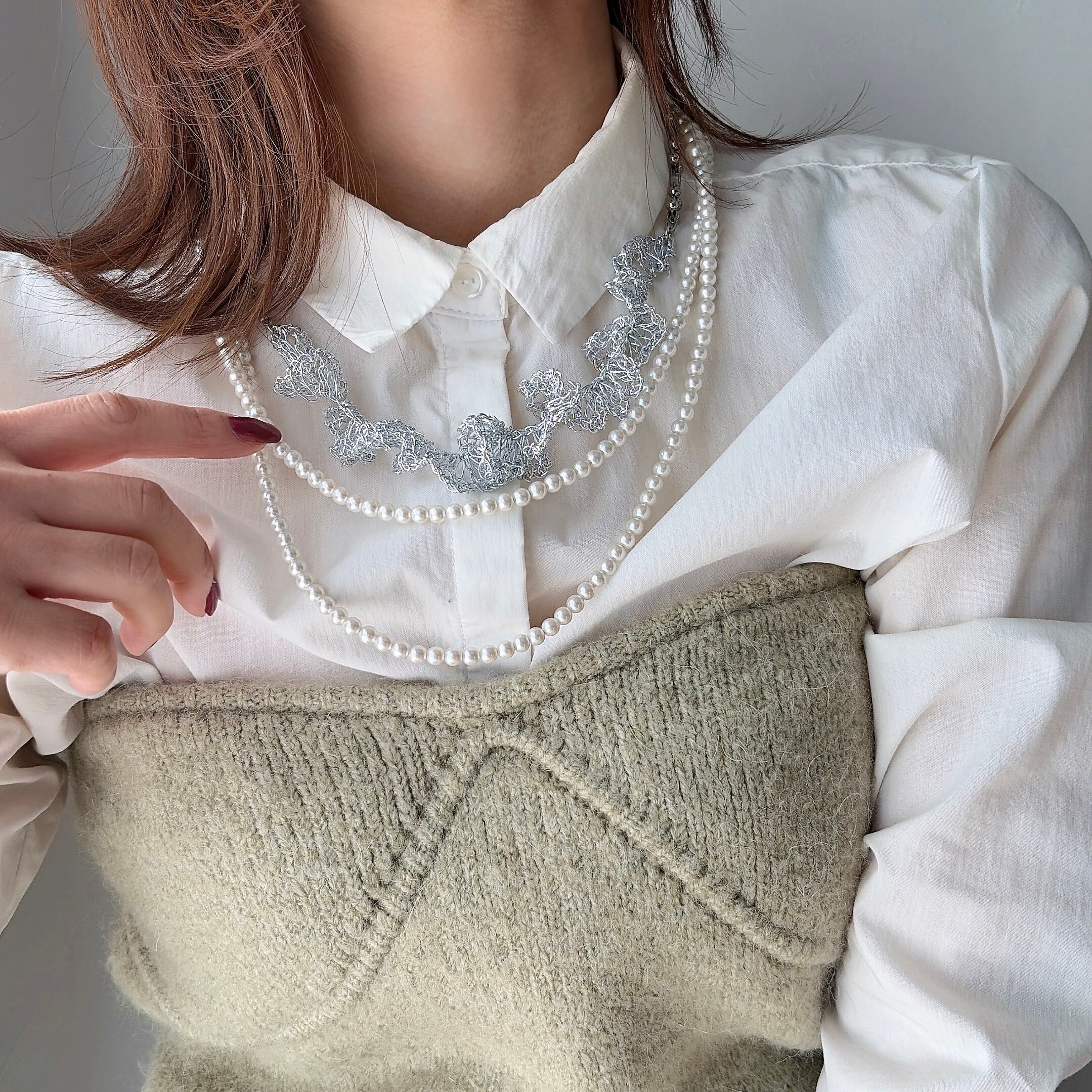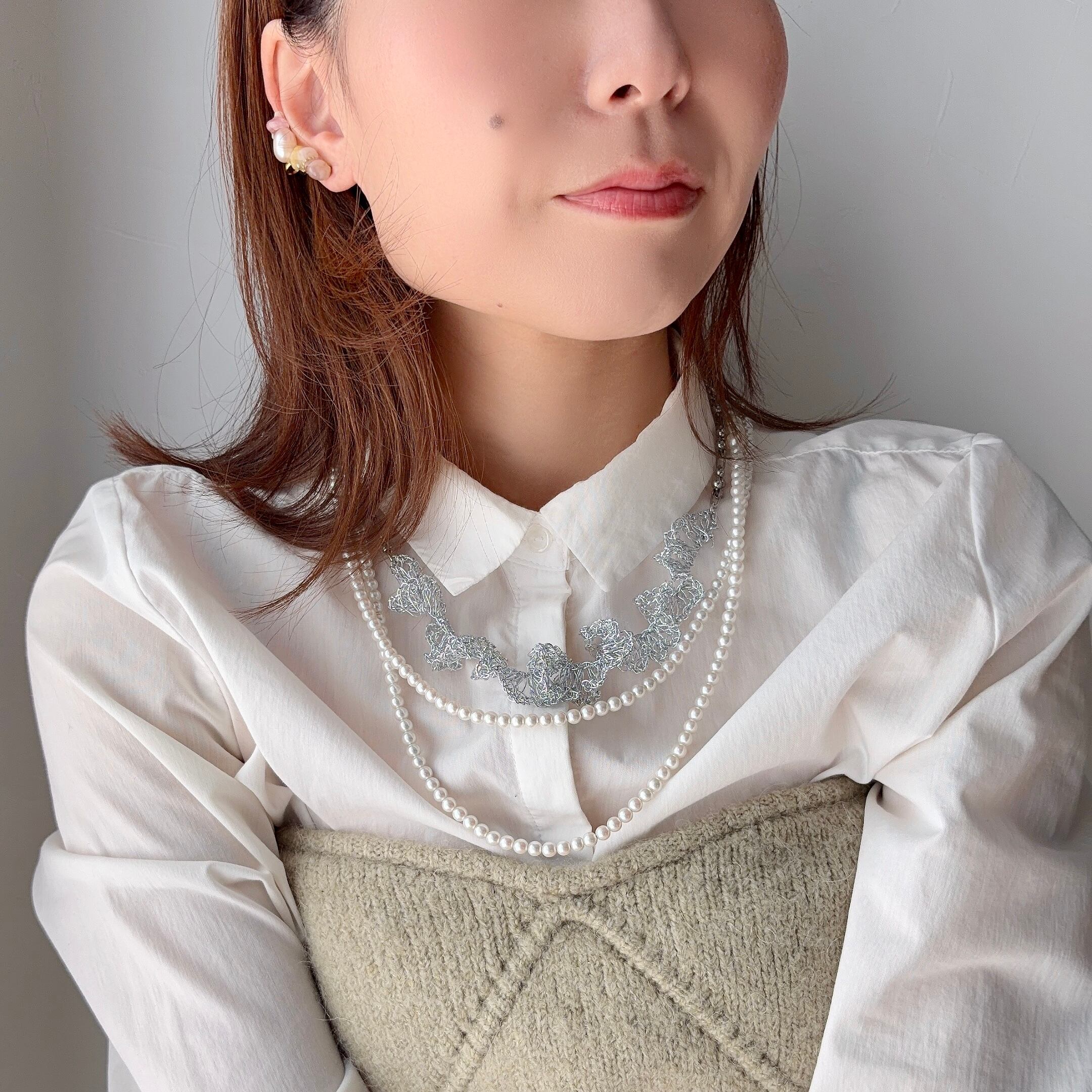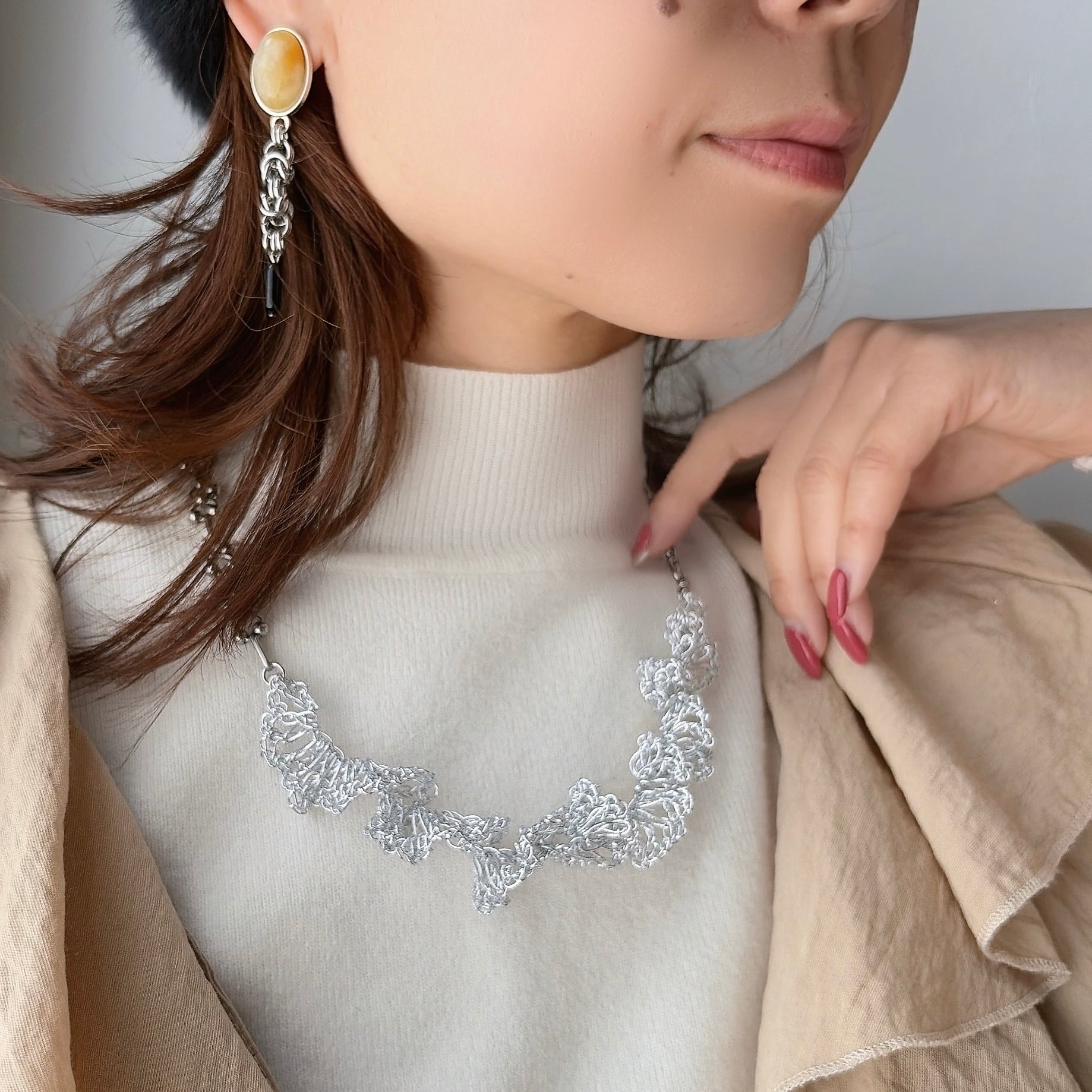 空気をふくんだような軽やかさと、さりげない存在感が胸元を華やかに彩ります。