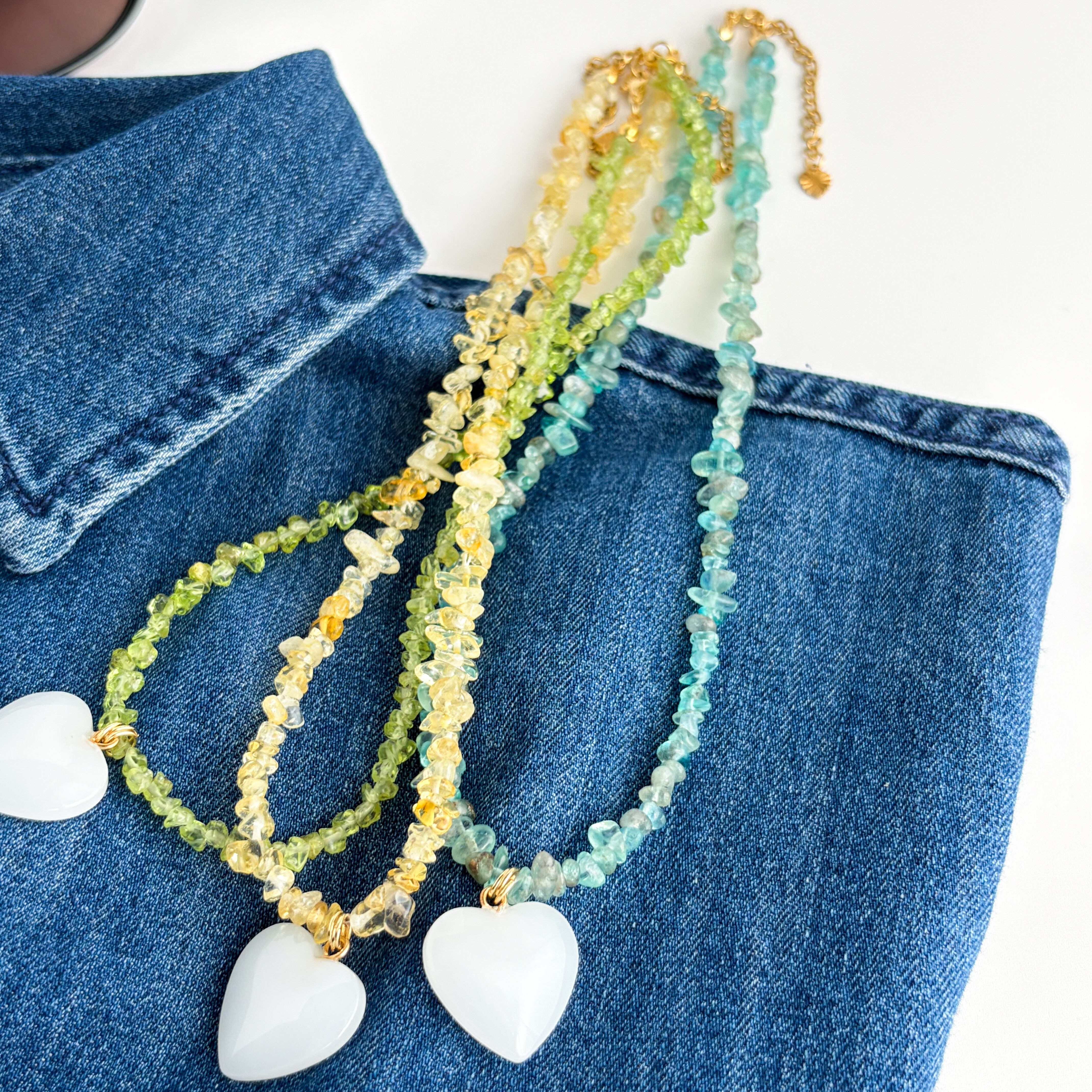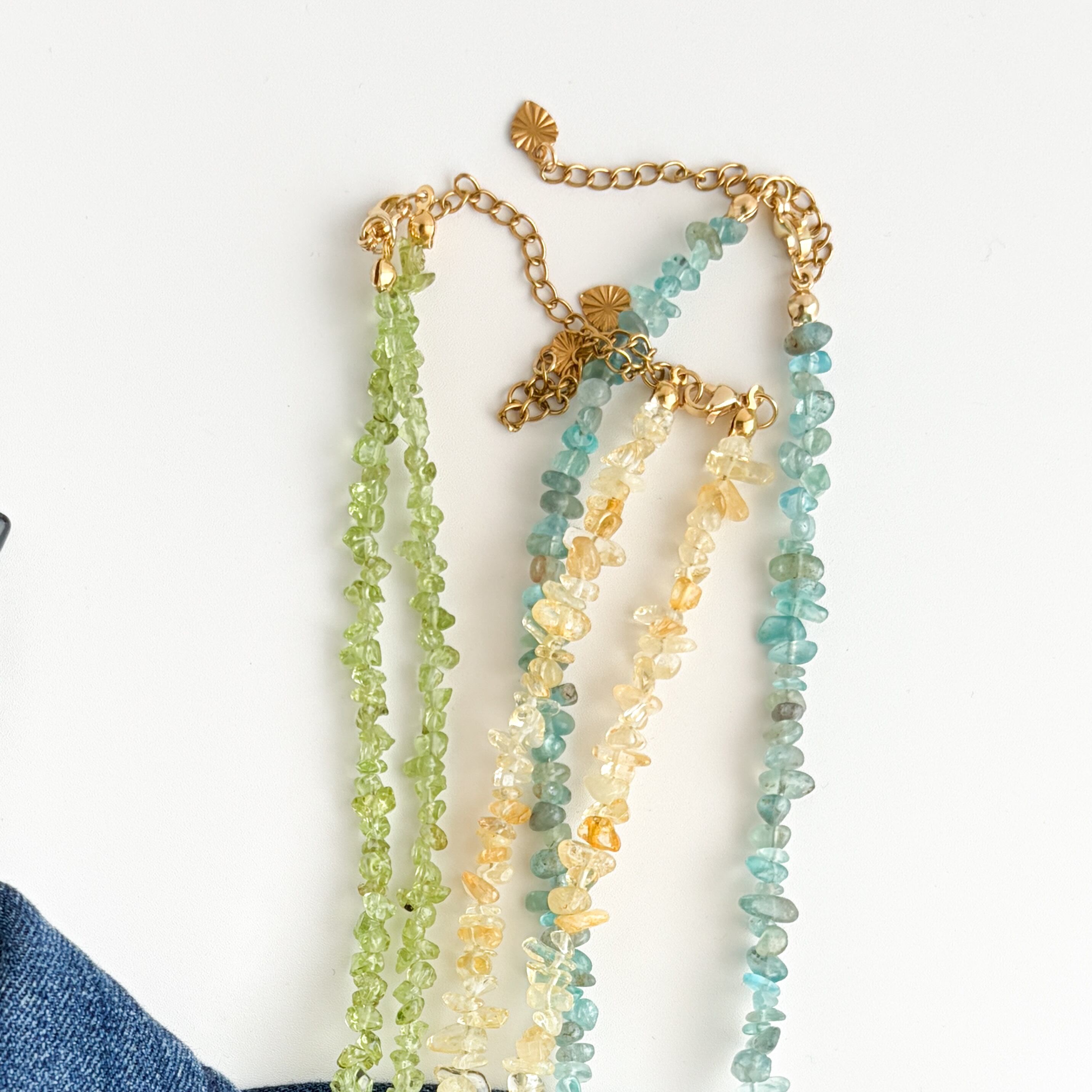 春色の天然石ネックレス【ペリドット・シトリン・アパタイト】