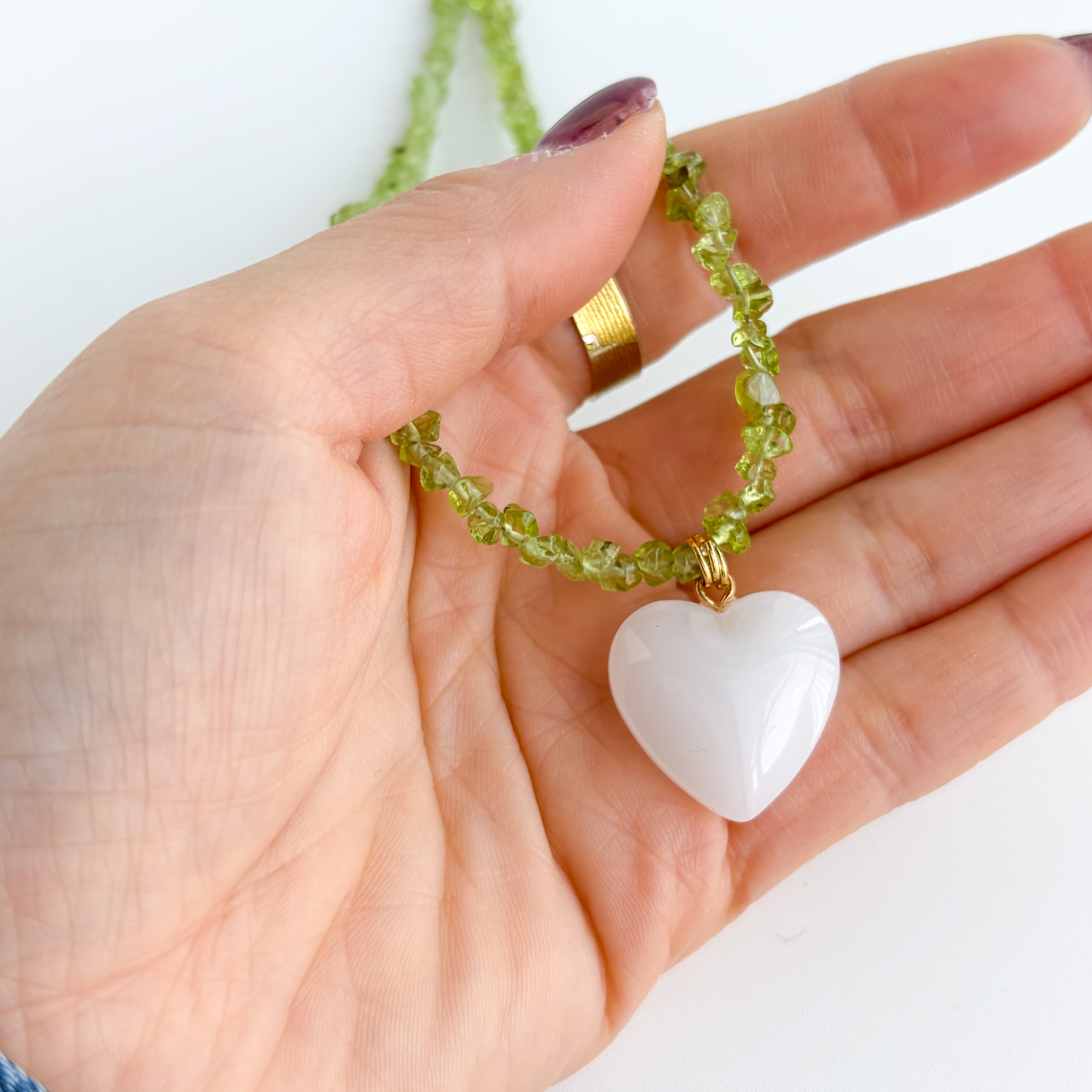 合わせたチャームは、乳白色のガラス製ハートチャームを♡