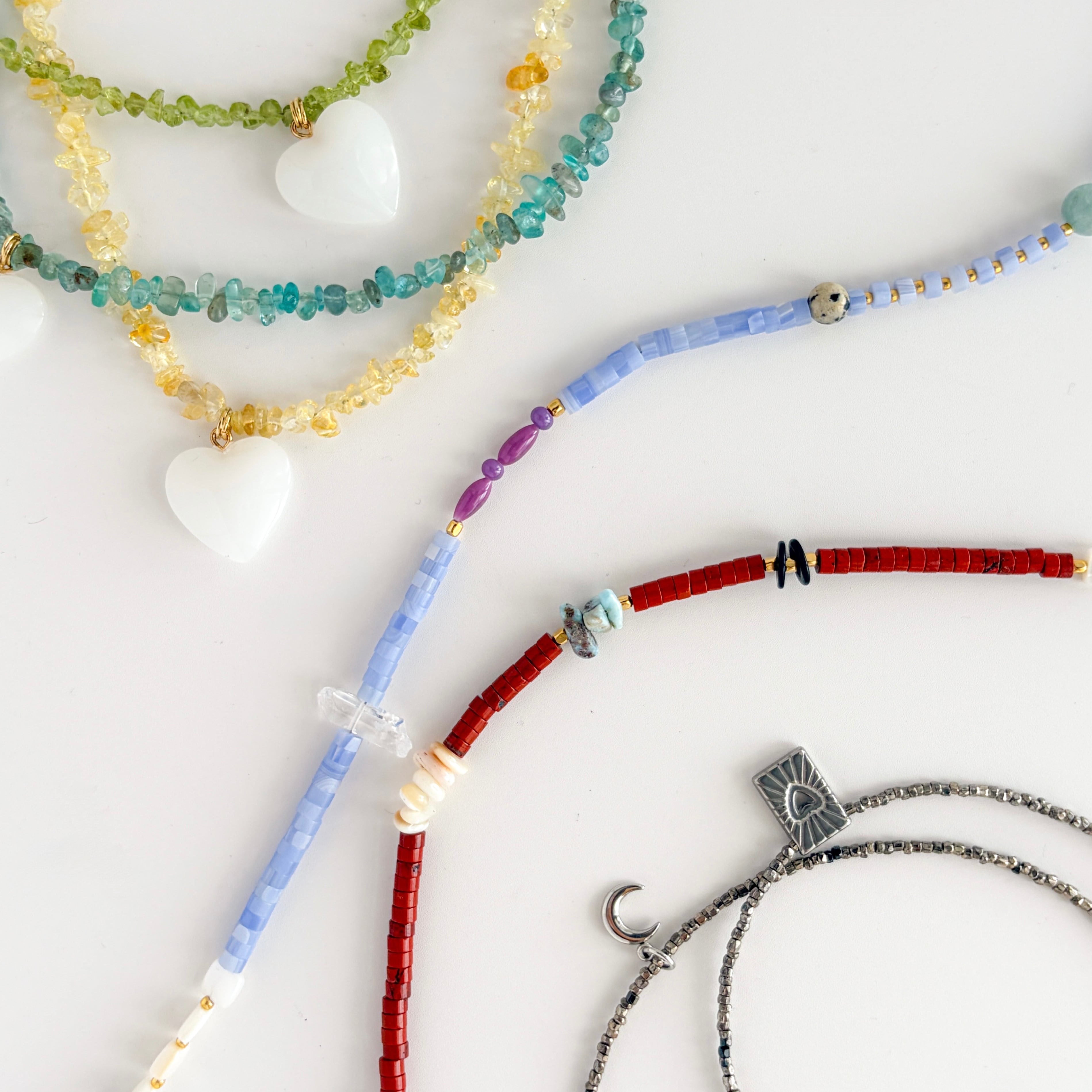 ひと粒ずつ表情の違うビーズを組み合わせ、