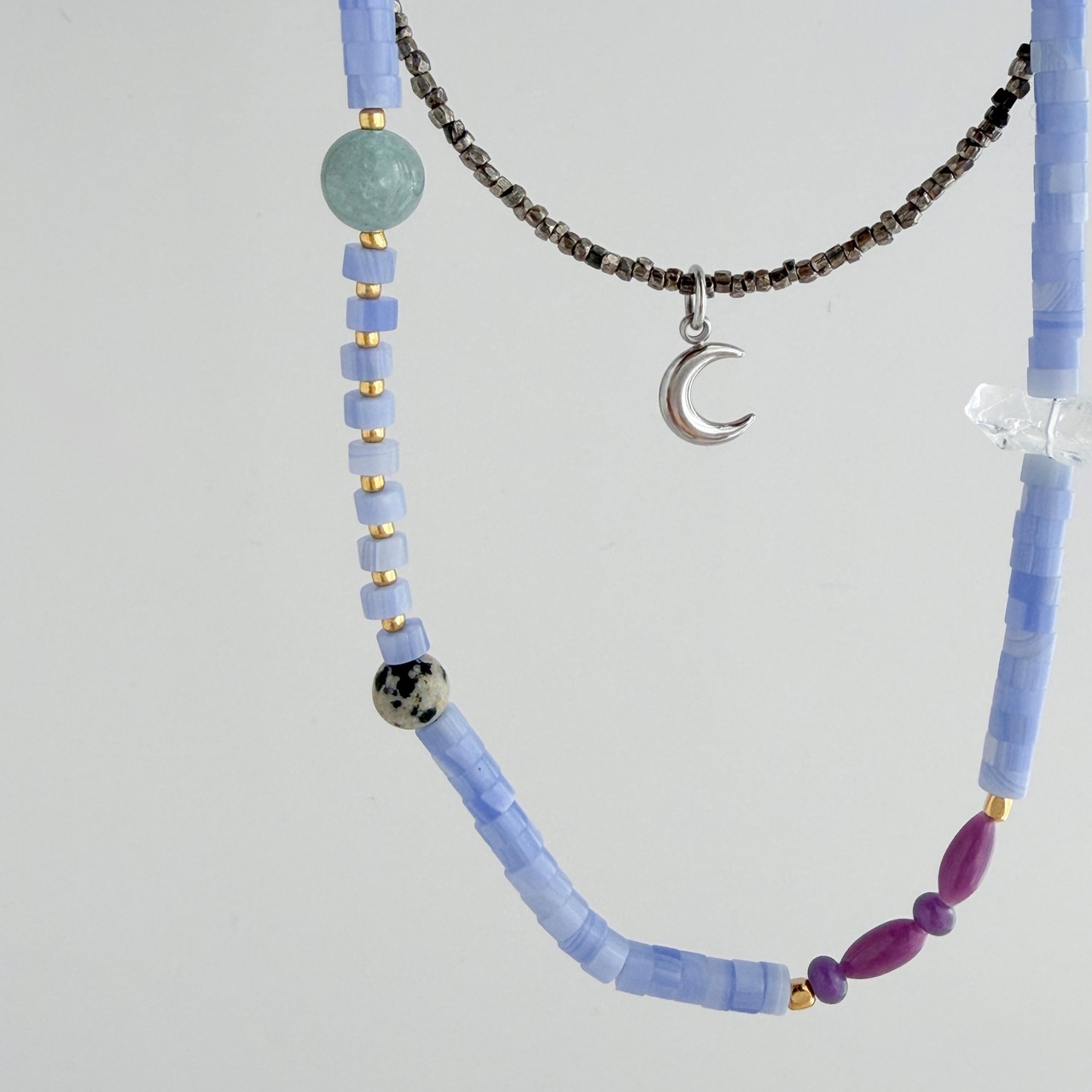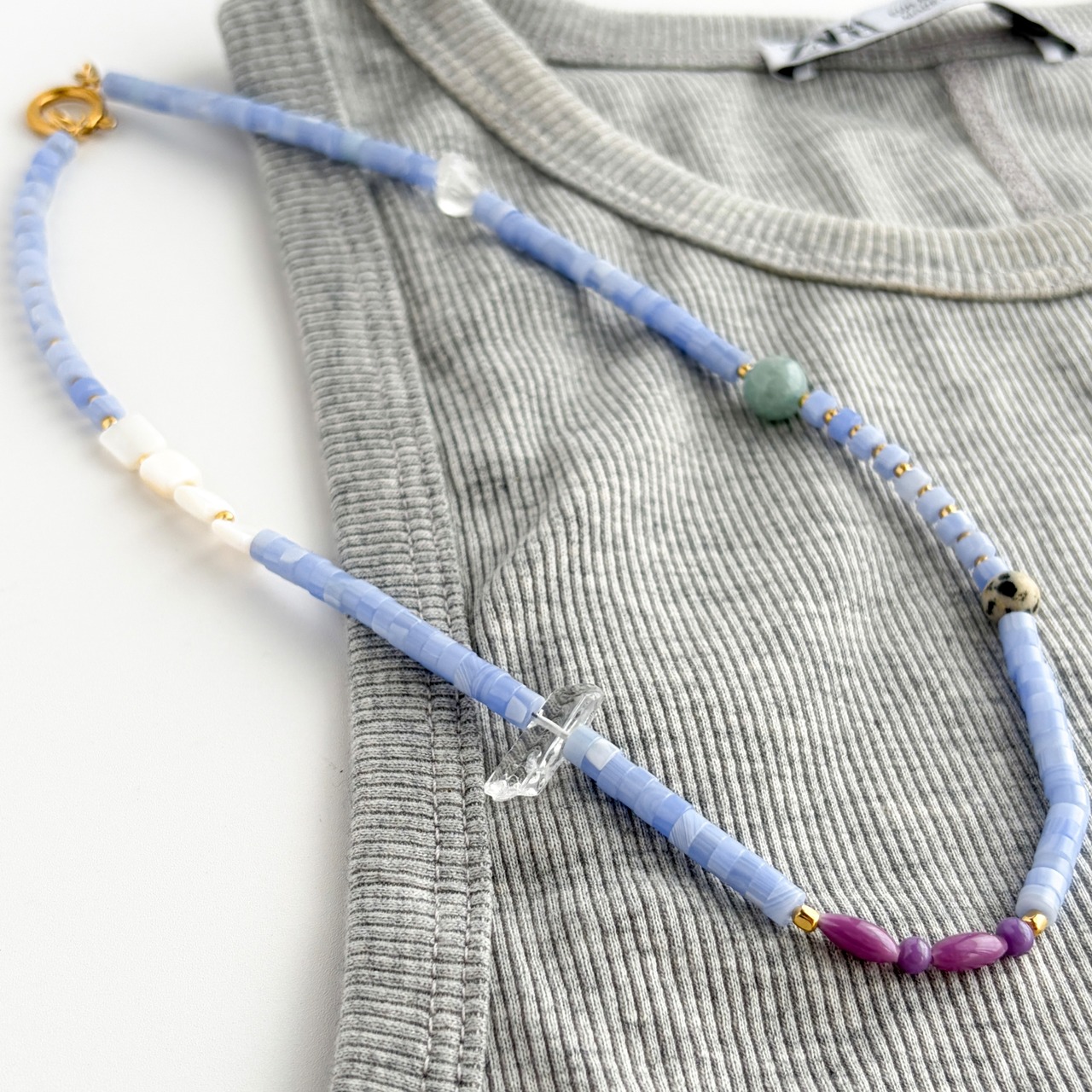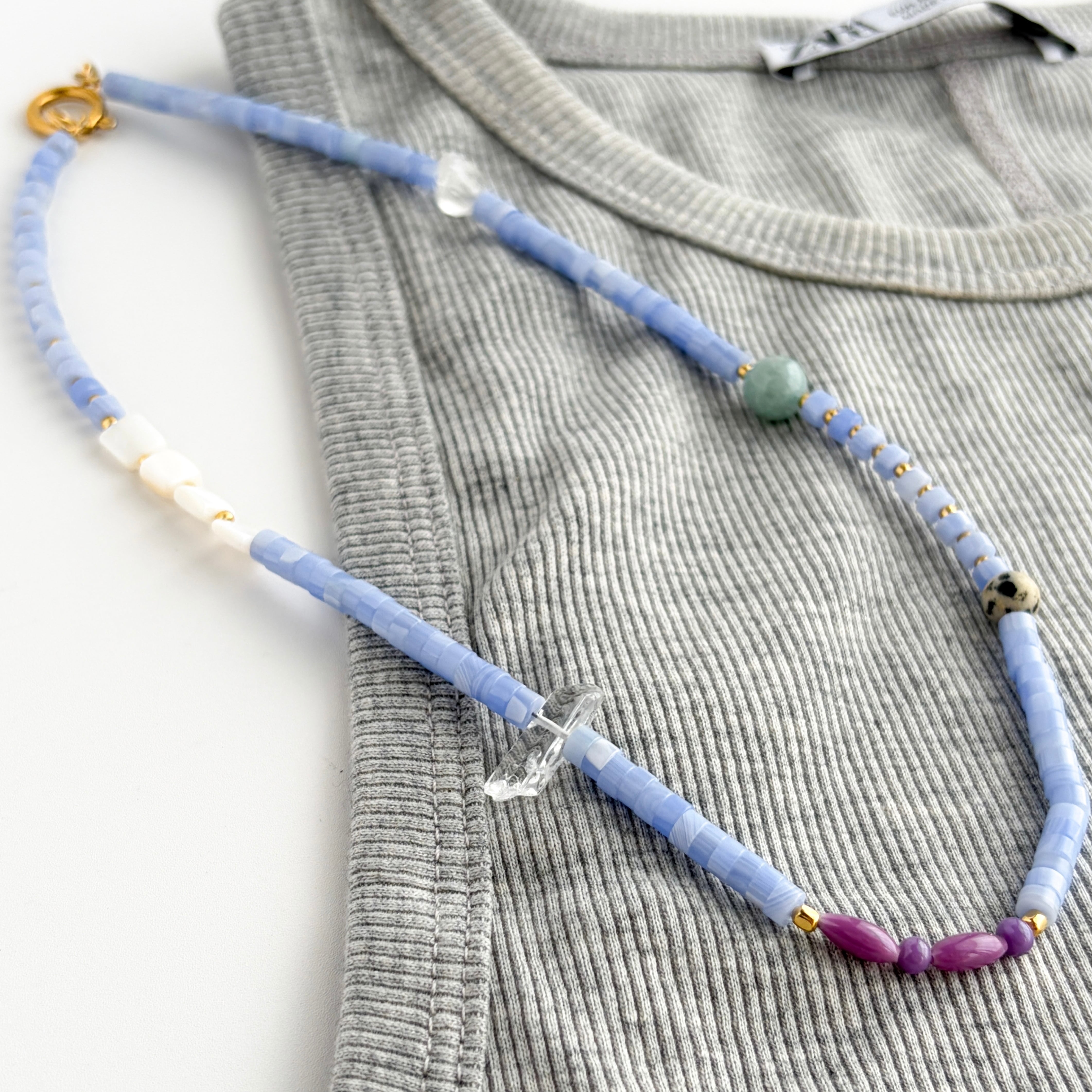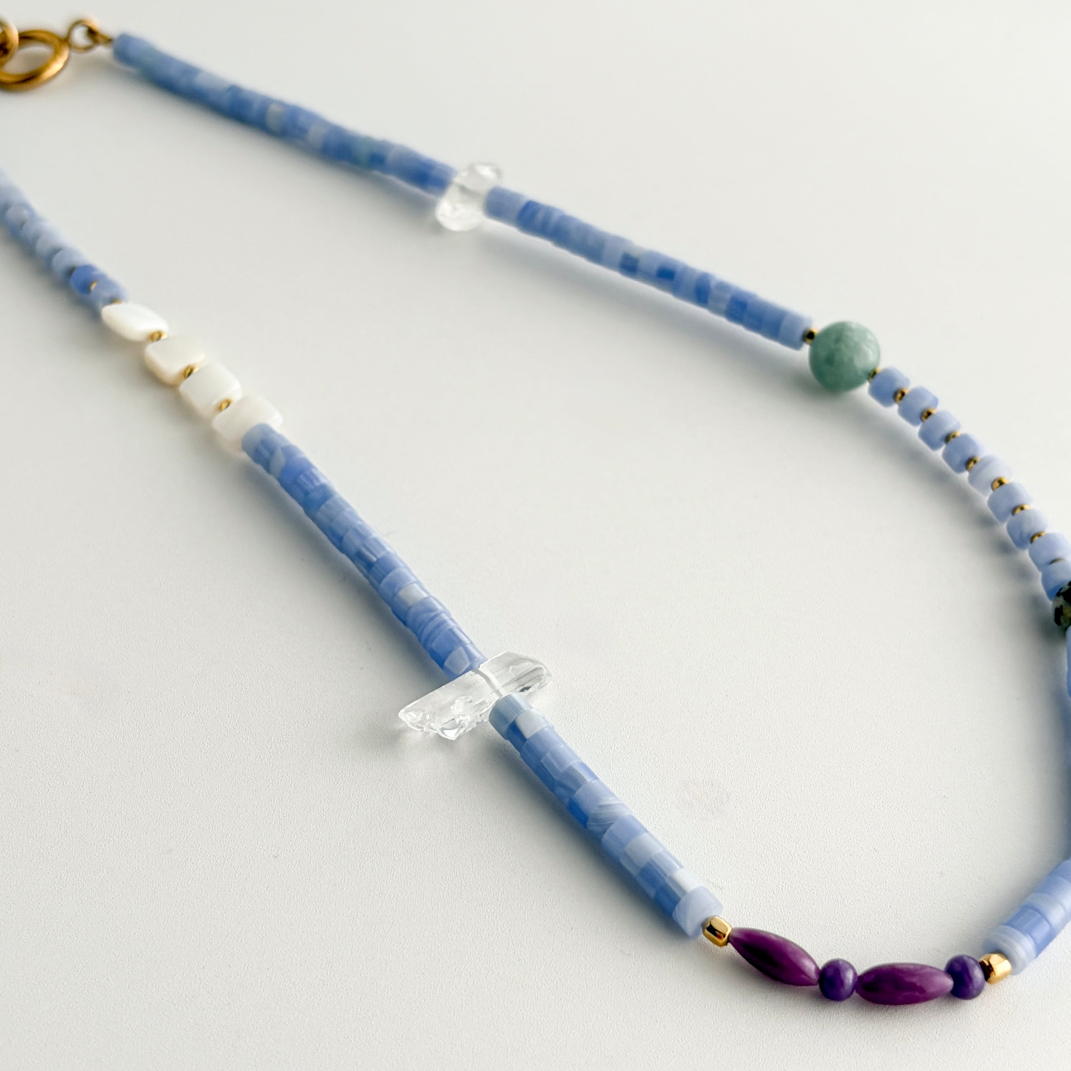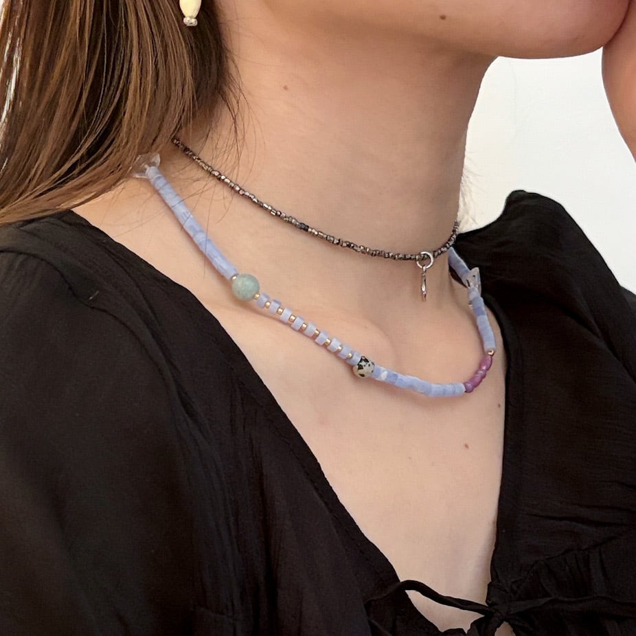 紫瑪瑙と天然石のミックスストーンネックレス