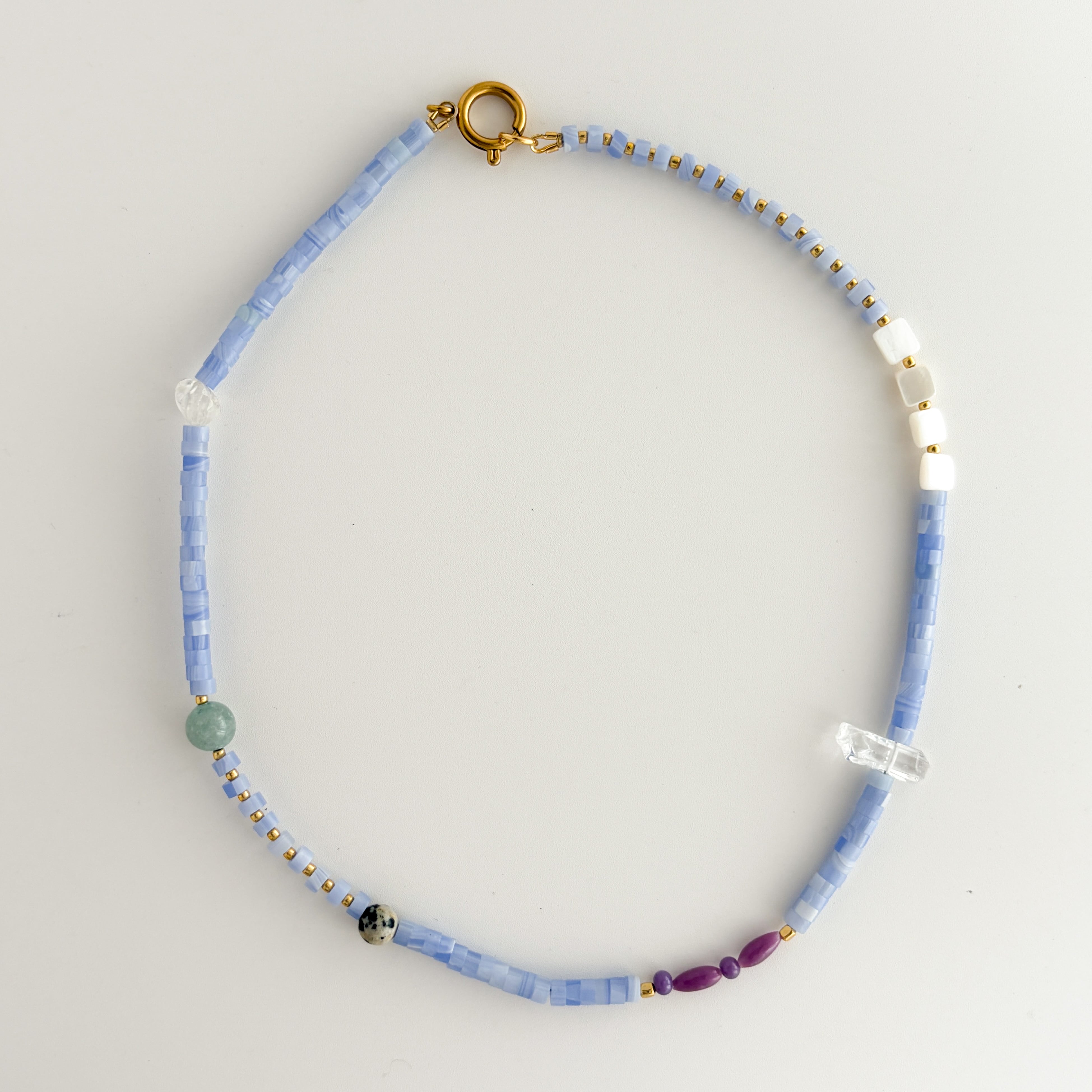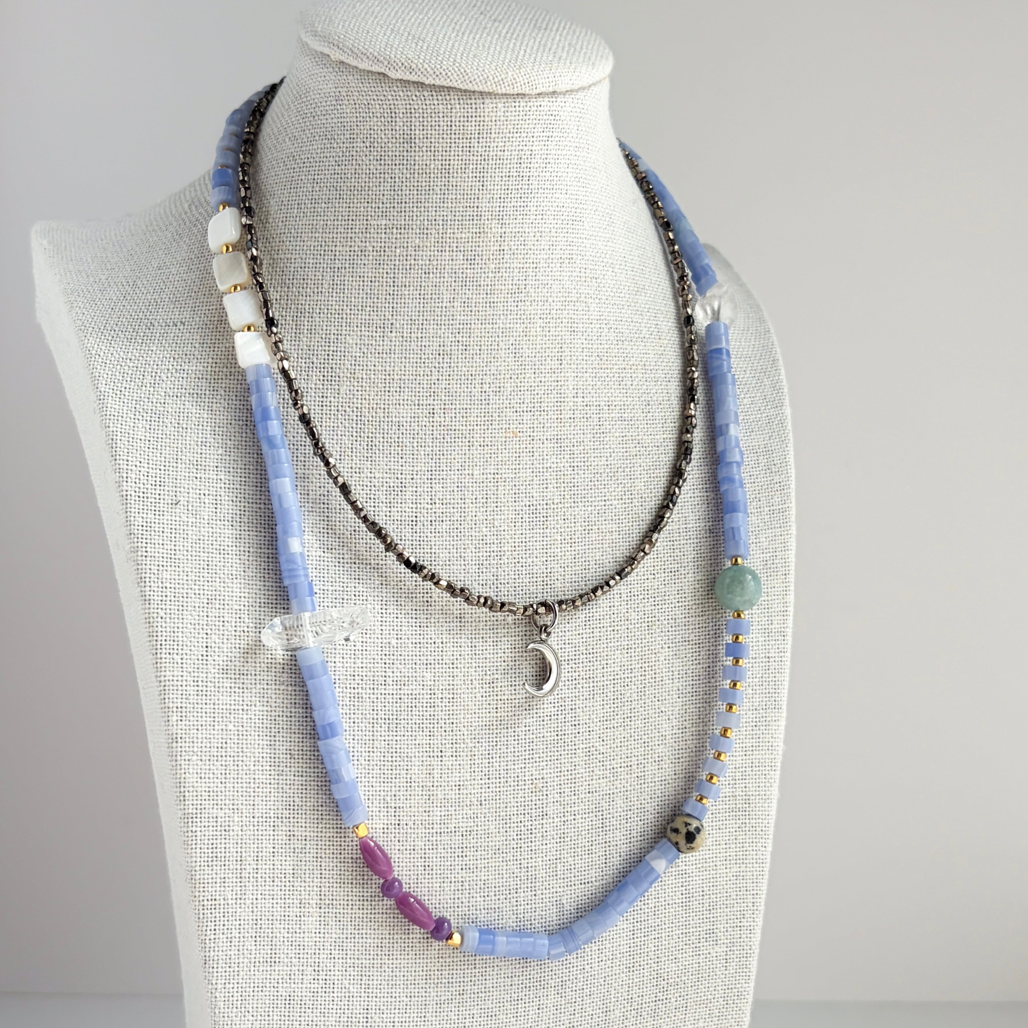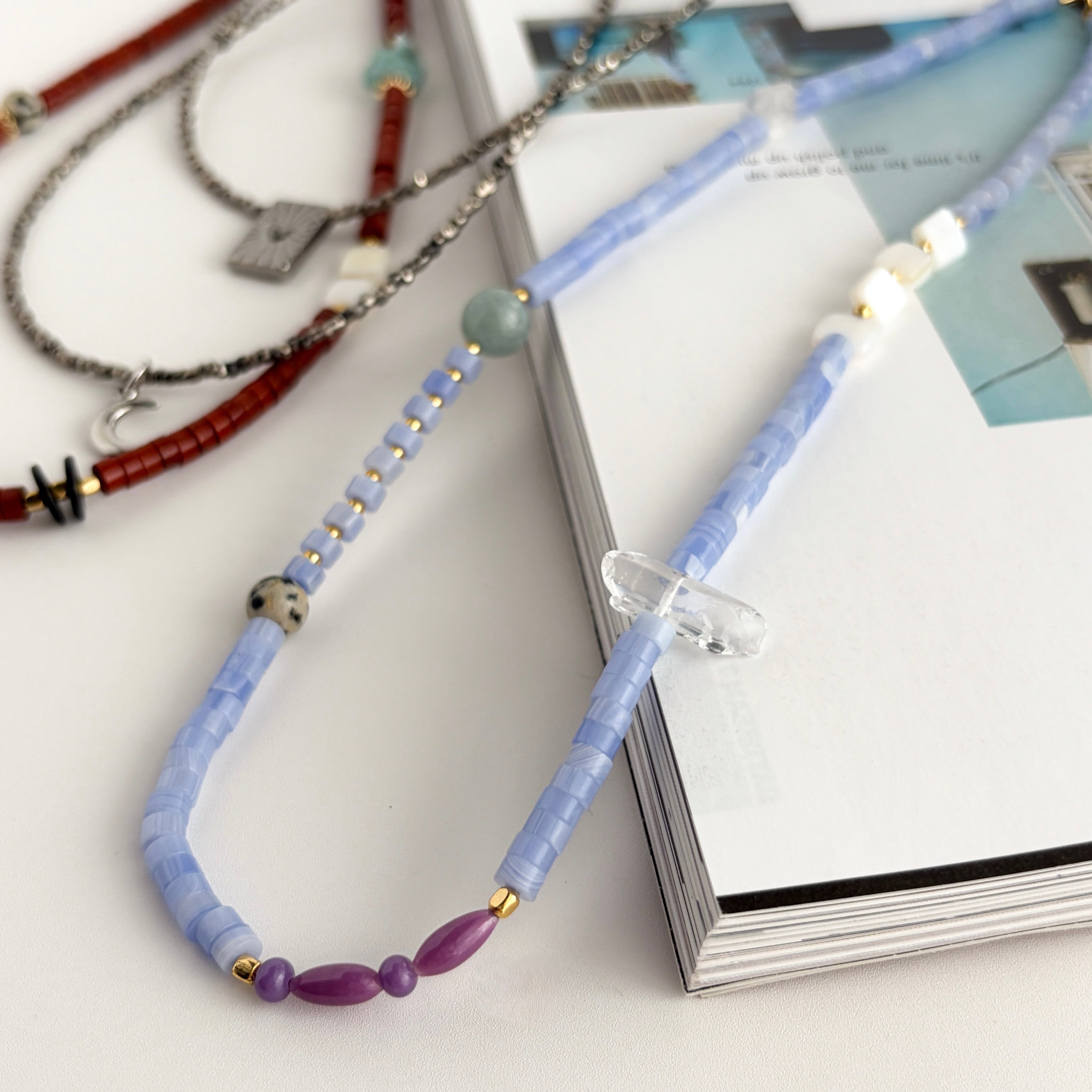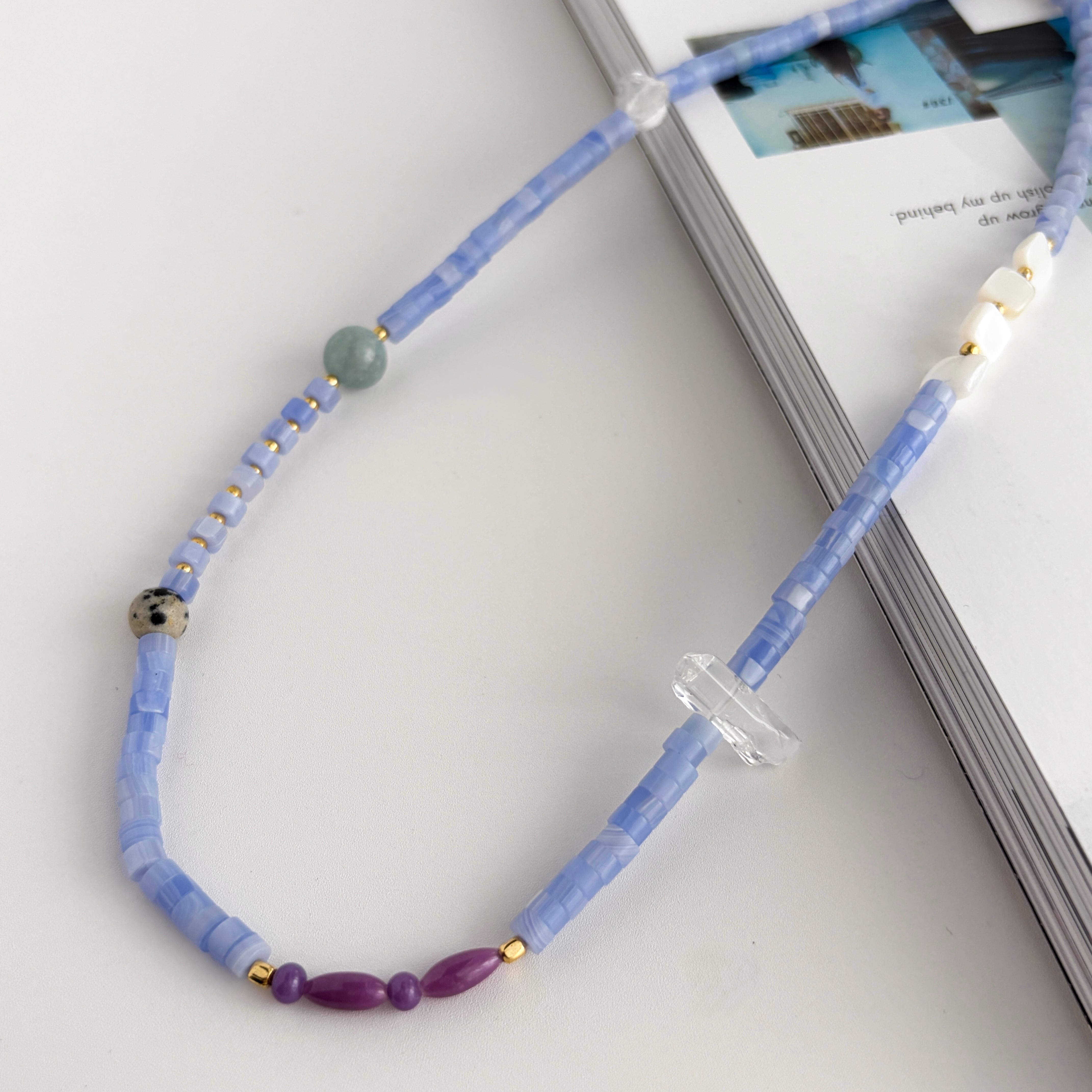 紫瑪瑙と天然石のミックスストーンネックレス