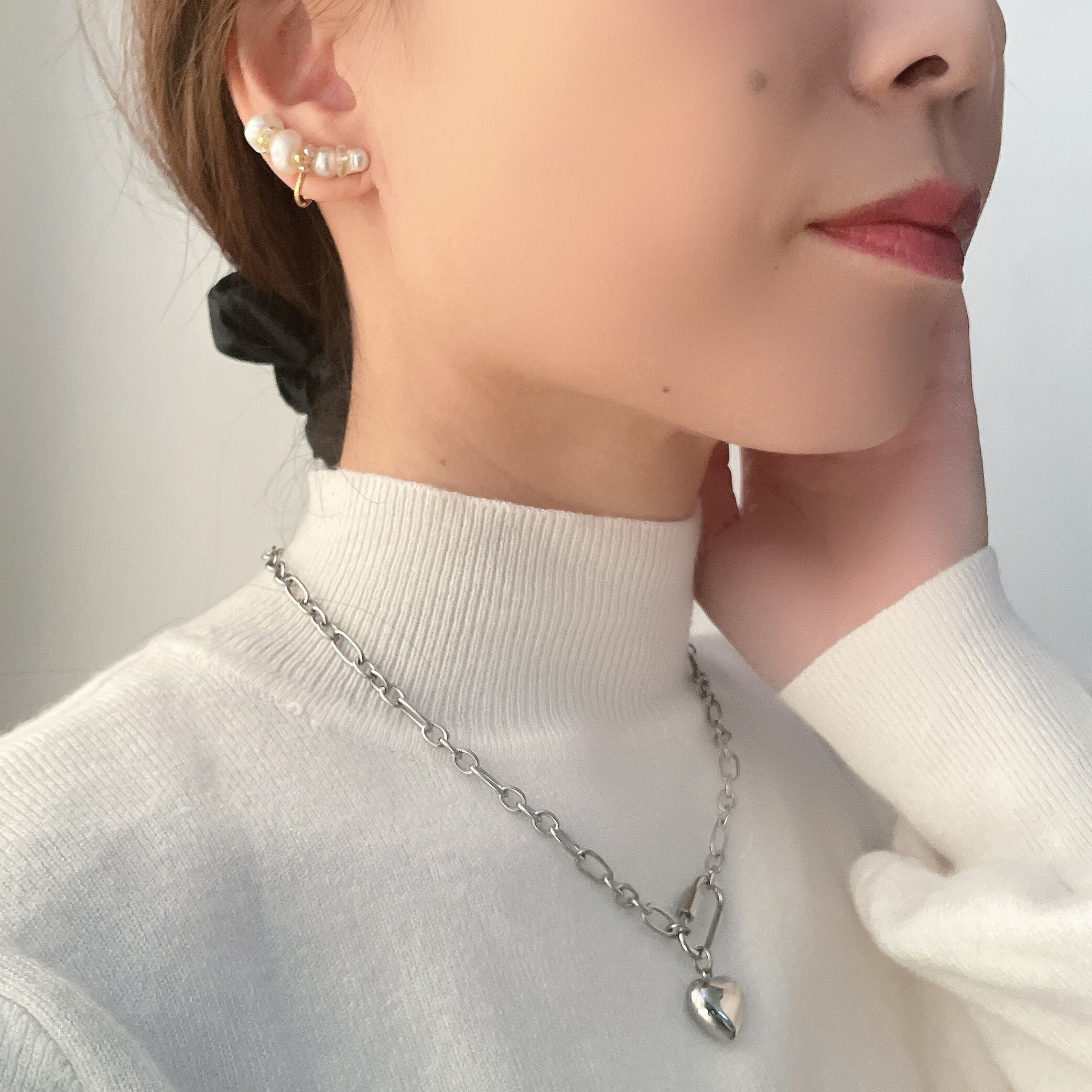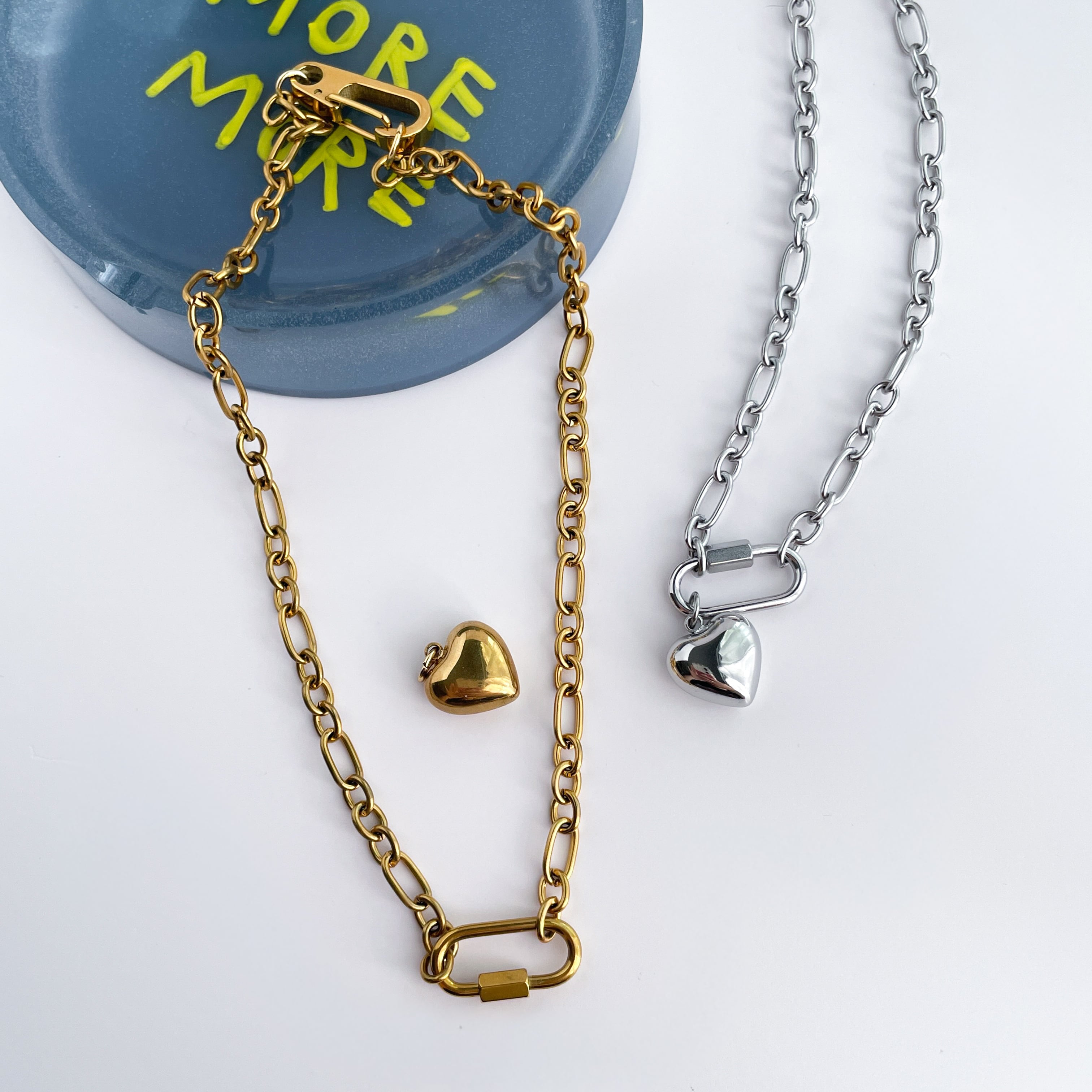 チャンキーチェーンと可愛いハートチャームが組み合わさったネックレスです。