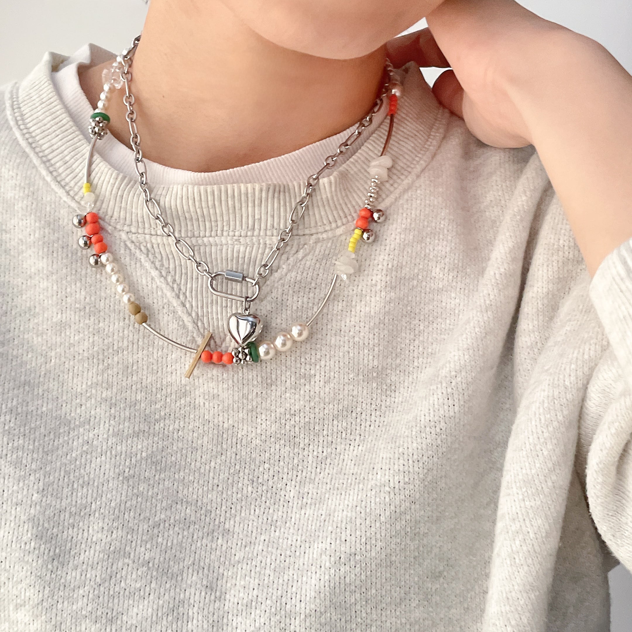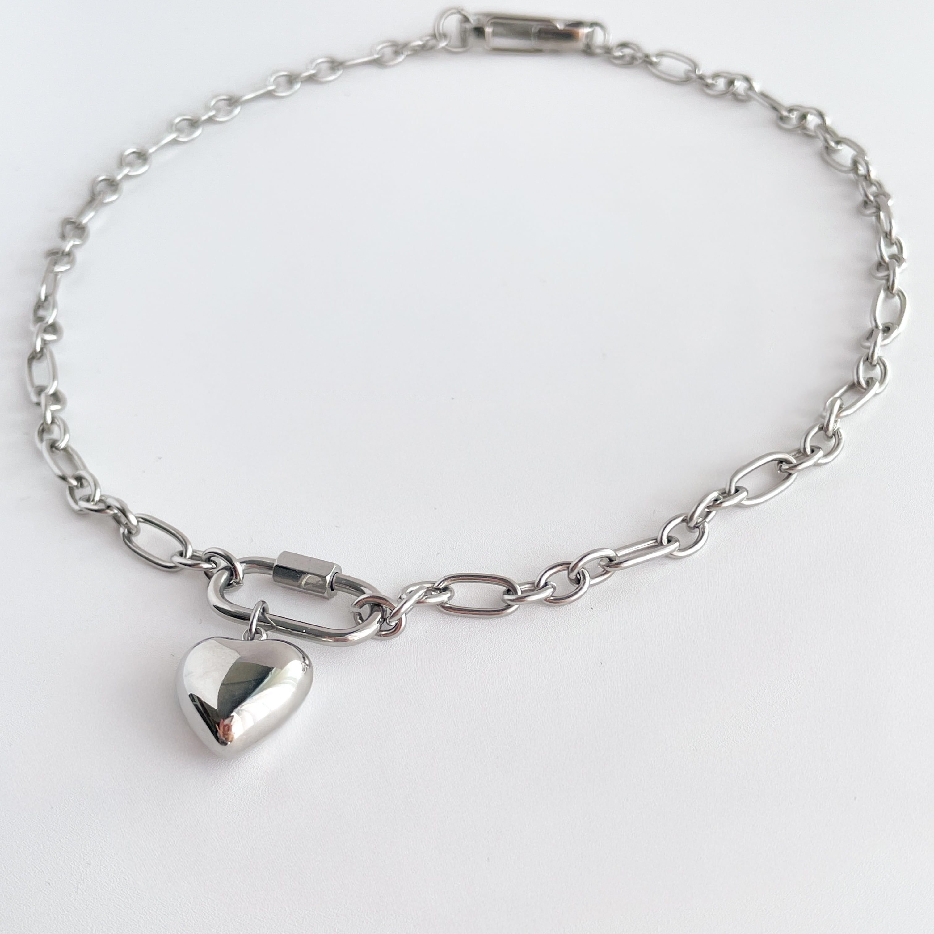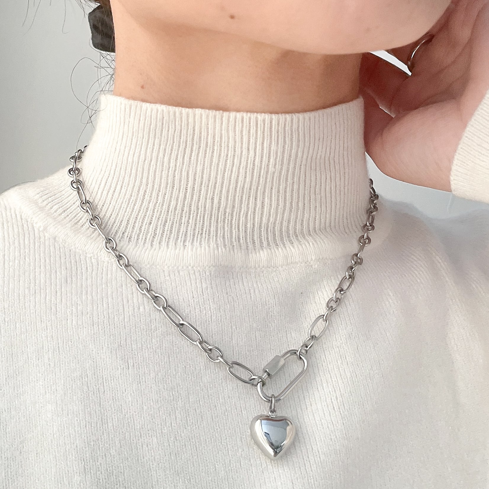 ハートチャーム&チャンキーチェーンネックレス シルバー リニューアル