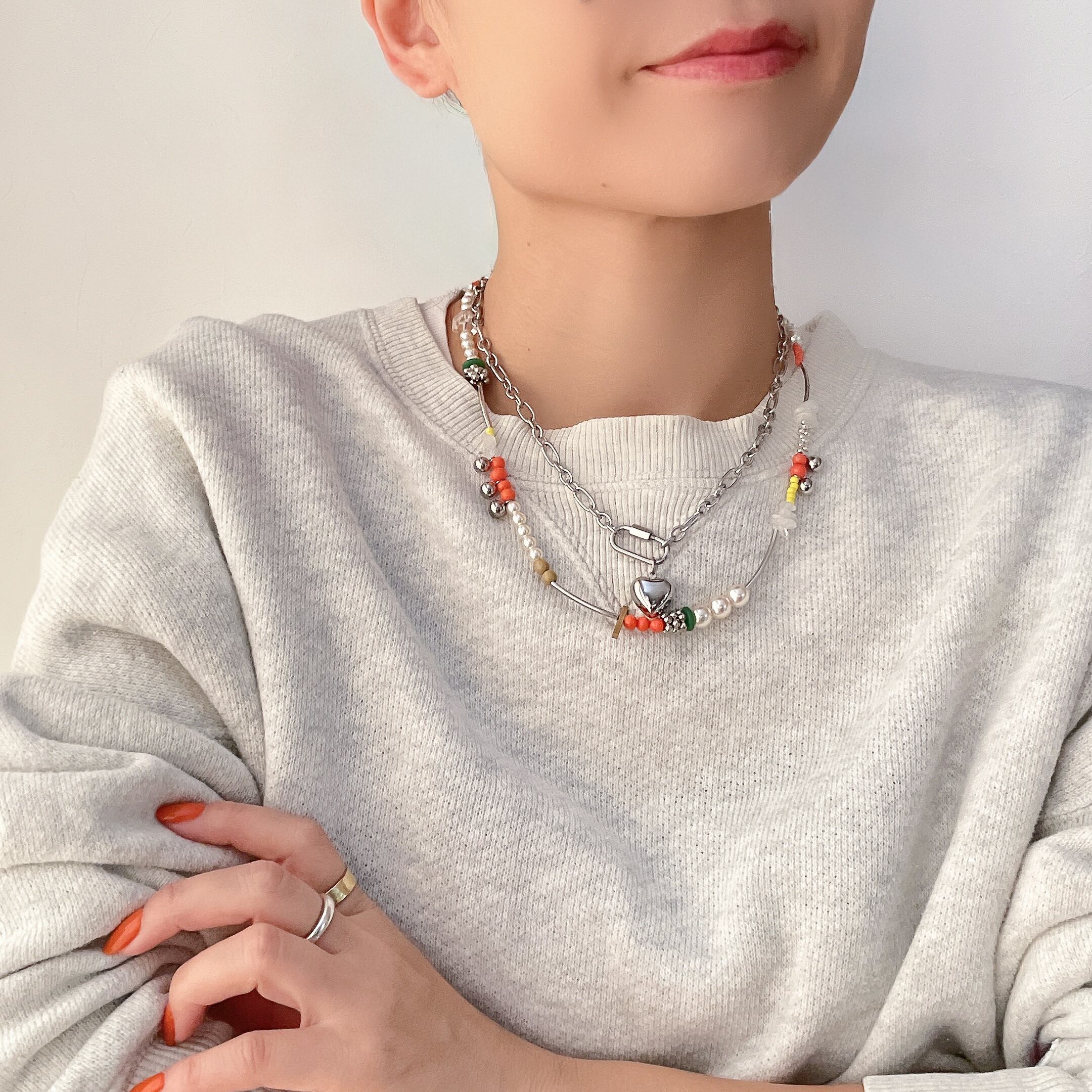 華やかな装いからカジュアルコーディネートまで、幅広いスタイルに溶け込むネックレス。